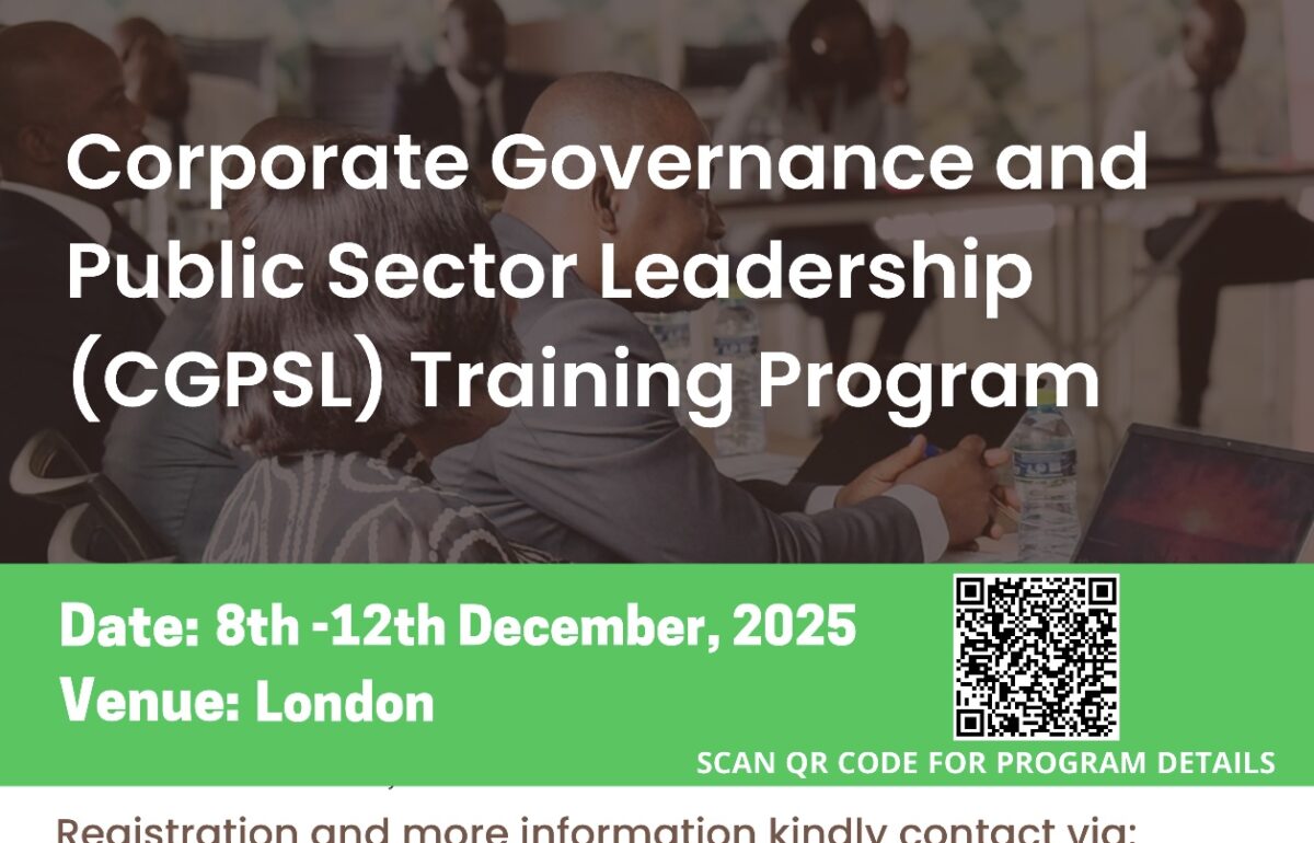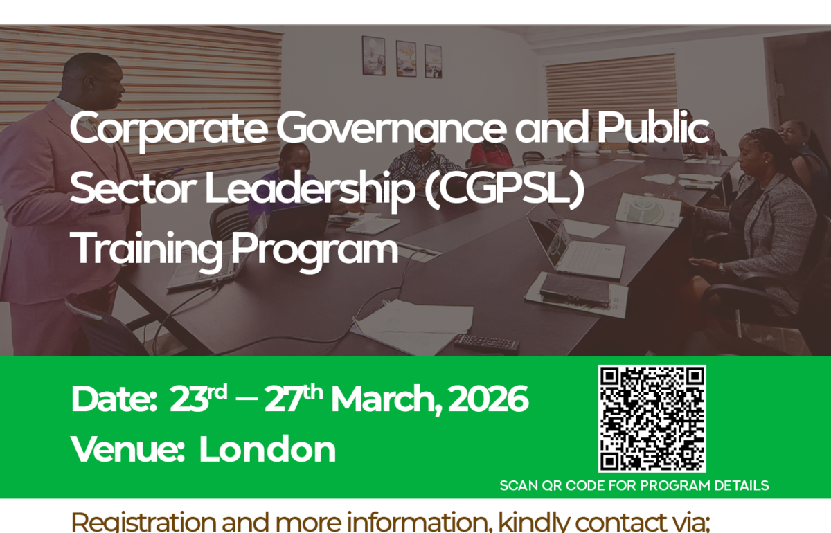 In an era of rising public accountability, transparency demands, and evolving leadership challenges, public sector leaders must operate within strong corporate governance frameworks to drive development outcomes. The Corporate Governance and Public Sector Leadership Program (CGPSL) is a high-impact training designed to equip public sector leaders, board members, and senior administrators with governance and leadership strategies to improve institutional performance, transparency, stakeholder trust, and service delivery.